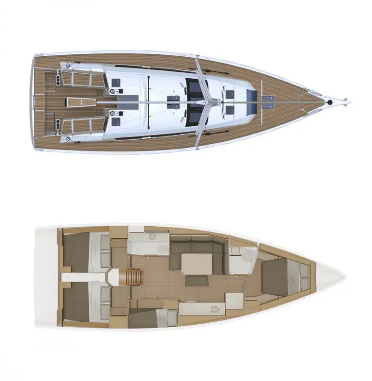 The Dufour 430GL benefits from all their know how in interior design, layout and finishing. The four cabins sleeping upto 10 crew are spacious and dressed with the highest quality materials.